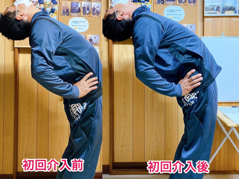 整骨院に数ヶ月通っていたが、腰の痛みが一向に改善されず来院。後方へ傾けると...